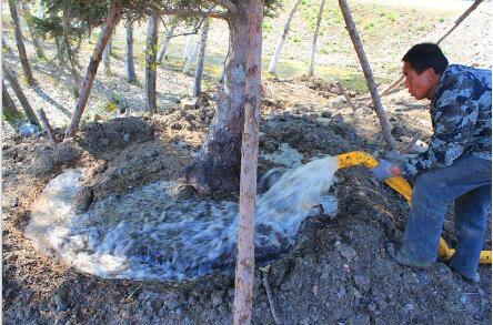 四是施肥。由于苗木受凍后吸收能力弱,這時(shí)應(yīng)減少化肥的使用,可以選擇植物壹號(hào)+通用速生根進(jìn)行處理,有利于植物根系生長(zhǎng),提供植物生長(zhǎng)所需要的養(yǎng)分。