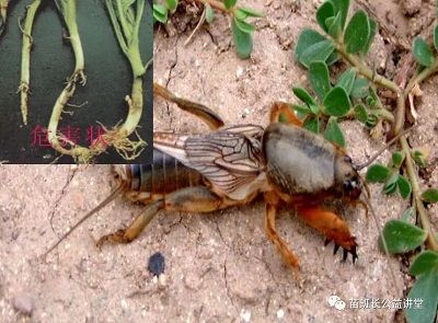 螻蛄:主要以成蟲、若蟲危害植物幼苗的根部和靠近地面的幼莖。3月下旬開始活動,4—6月上旬是為害盛期。