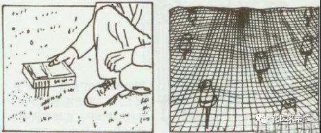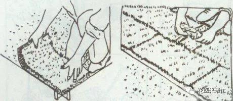 鋪后7天不要壓 在每行兩端應(yīng)鋪大塊草皮,