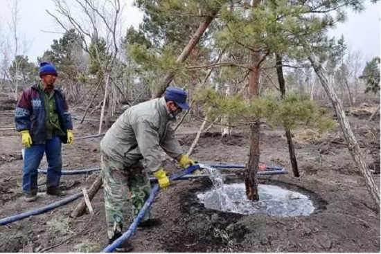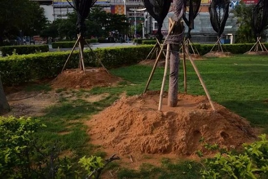 凍水灌完后結(jié)合封堰,在樹(shù)木根頸部培起直徑80至100厘米,高40至50厘米的土堆,防止低溫凍傷根頸和樹(shù)根。