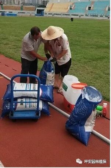 在其他特殊時候,如土壤板結(jié)嚴(yán)重,土壤透氣性不好,需要及時進行改良和復(fù)壯時,選用微生物菌肥“沃園”(有效活菌解淀粉芽孢桿菌數(shù)≥0.2億/g,N+P+K≥8%,有機質(zhì)≥40%)進行撒施,并結(jié)合澆水;使用后,可以增加土壤有益微生物菌群,改善土壤的團粒結(jié)構(gòu),回復(fù)突然鍋里,培肥地力,壯根健苗,提高草坪的抗性,使草坪根系旺盛,植株健壯。