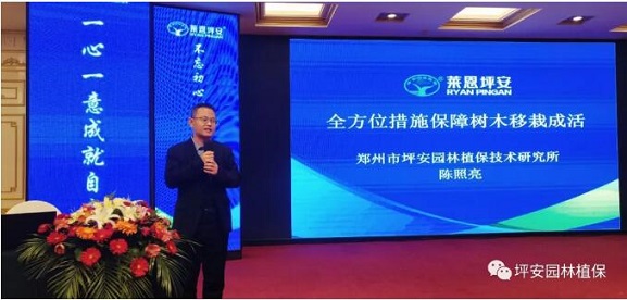 隨后,陳照亮老師為本次會議帶來的第二個報告《全方位措施保障苗木成活率》也精彩紛呈,陳老師對苗木選擇、運輸、栽植等各個環(huán)節(jié)的要進行的養(yǎng)護措施進行了講解,并配備大量圖片,陳老師的講解風(fēng)趣幽默,知識點涵蓋全面,對實戰(zhàn)工作指導(dǎo)意義強,收到與會者的好評!