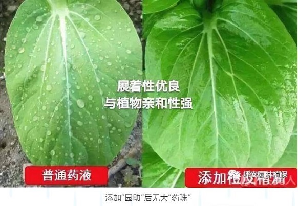 2.增加植物葉片光亮性,降低藥液刺激氣味并散發(fā)橙子氣味。