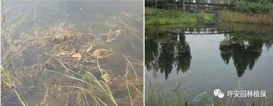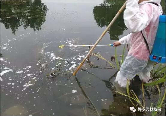用藥中,浮在水面的水草用噴霧器直接噴淋,沉在水下的水草需將噴霧器深入水中,保證下部水草受藥。