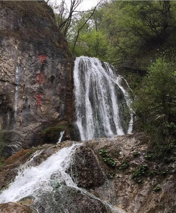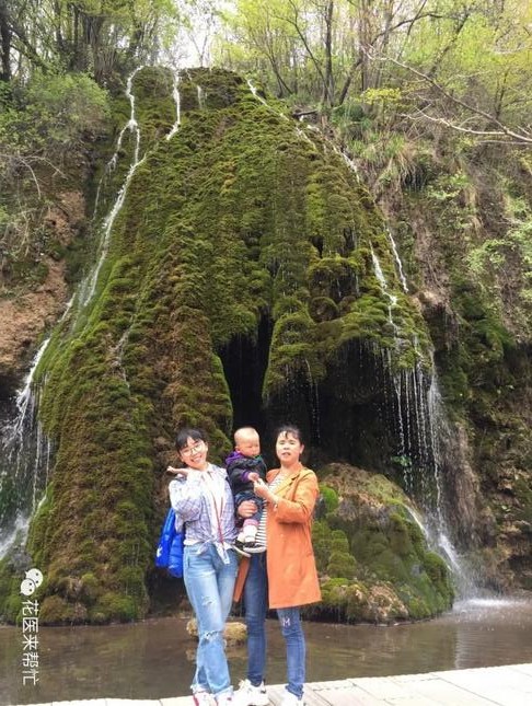 4月10日,清晨還有點涼,但也抵擋不住父母的熱情,伴著清晨露水的滴答聲,大巴已經(jīng)駛往欒川。一路上歡聲笑語,帶著對重渡溝的憧憬和激動,在12點左右抵達(dá)重渡溝風(fēng)景區(qū)。