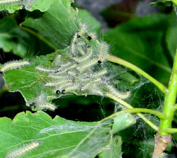 2、人工防治。在幼蟲3齡前發(fā)現(xiàn)網(wǎng)幕后人工剪除網(wǎng)幕,并集中處理。如幼蟲已分散,則在幼蟲下樹化蛹前采取樹干綁草的方法誘集下樹化蛹的幼蟲,定期定人集中處理。