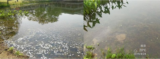 2.本品對水綿防除有特效,施用后水草吸收快、見效快、死草快,1~3天就能見效,7~10天就死草