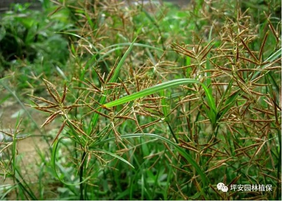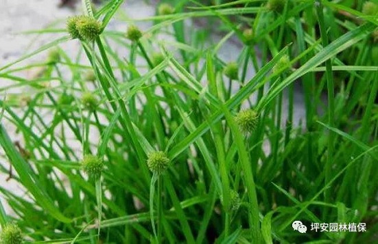 最近田小蓓走訪多個園林養(yǎng)護單位,很多園林同仁一致反映近期園林養(yǎng)護最為頭疼就是香附子等莎草科雜草的防除問題。因為莎草科雜草具鱗狀根(塊狀根)且根系很難被完整拔出,人工拔除后斷在土壤里的部分一澆水就會又長起來一地草。多雨季節(jié),香附子、水蜈蚣簡直是人工拔不盡,夏雨淋又生!