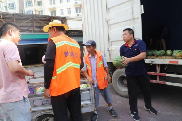 高溫送清涼 惠濟(jì)區(qū)長興路街道萊恩坪安非公黨支部情系環(huán)衛(wèi)工近期,鄭州連日來的桑拿天讓人們體驗到了盛夏的“熱情”,為營造干凈、整潔城市環(huán)境的環(huán)衛(wèi)工人依然迎著烈日堅守崗位,作為一直致力于綠化建設(shè)、為城鄉(xiāng)生態(tài)助力的坪安園林植保非公黨支部,時常和環(huán)衛(wèi)工人在城鄉(xiāng)環(huán)境美化上攜手作戰(zhàn),坪安人最能體會他們的辛苦。7月25日下午,由河南省萊恩坪安園林植保有限公司黨支部積極參與到中共鄭州市惠濟(jì)區(qū)委組織部組織的“迎民族盛會 慶70華誕”黨員志愿活動中,將愛心西瓜送到長興路街道轄區(qū)各路段的環(huán)衛(wèi)工人手中。