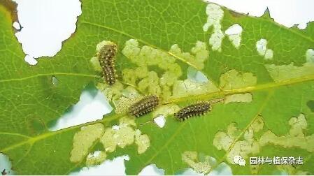 越冬后于4月下旬至5月下旬初孵,6月上中旬為第1代幼蟲(chóng)為害高峰。第2代幼蟲(chóng)于7月中旬盛孵,8月上旬時(shí)能在3-4天內(nèi)把全樹(shù)葉子吃光。第3代蟲(chóng)于9月上中旬盛孵,9月下旬危害尤甚,常食盡全樹(shù)綠葉,僅剩葉脈。第4代蟲(chóng)于1月上中旬發(fā)生,發(fā)生時(shí)數(shù)量相對(duì)較少。11月下旬至12月一般無(wú)蟲(chóng)害。
