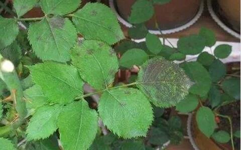 發(fā)病植株葉片初期出現(xiàn)褐色小點(diǎn),并逐漸擴(kuò)大為近圓形黑色病斑,嚴(yán)重時(shí)導(dǎo)致葉片變黃、脫落,影響植株生長(zhǎng)、開花和觀賞。病菌以菌絲體或分生孢子盤在枯枝或土壤中越冬。翌年5月中下旬開始侵染發(fā)病,7~9月為發(fā)病盛期。