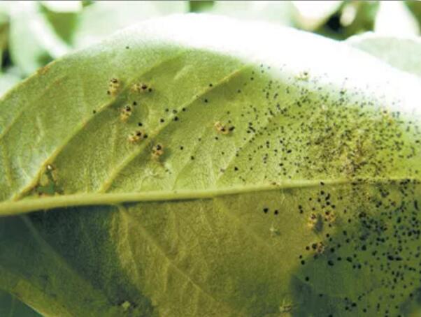 危害時(shí)整株葉片失綠變色,葉背布滿煙油狀分泌物。該蟲成、若蟲集中在葉背面刺吸危害,造成葉片出現(xiàn)黃白色、蒼白色斑點(diǎn),并分泌褐色粘液,嚴(yán)重時(shí)造成早期落葉,影響樹木生長(zhǎng)和花芽形成。