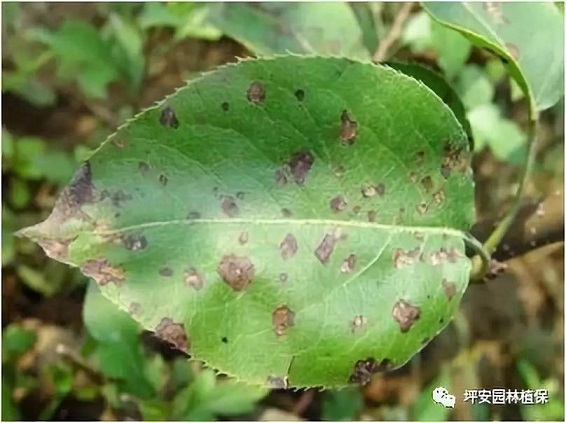 褐斑病:主要危害葉片,也可危害果實(shí)和葉柄。發(fā)病初期葉背出現(xiàn)褐色小點(diǎn),后擴(kuò)展為0.5~3.0cm的褐色大斑,邊緣不整齊。病斑較大,暗褐色,圓形或不規(guī)則形。葉片發(fā)黃,但病斑周圍仍保持有綠色暈圈,且病葉易早期脫落。這是褐斑病的重要特征。