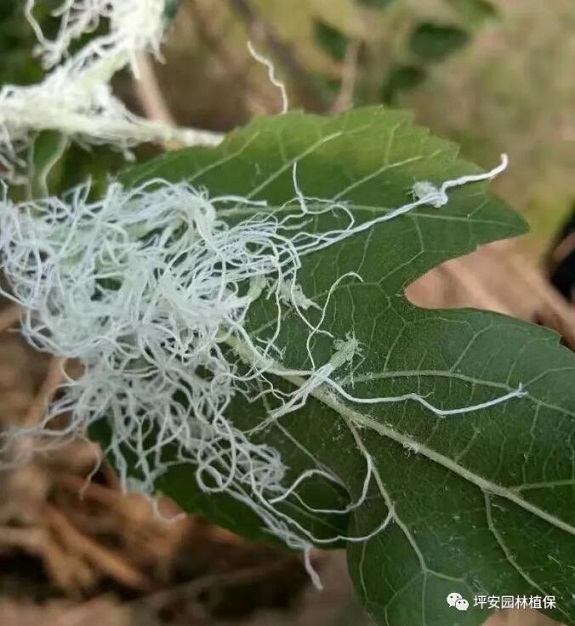 若蟲和成蟲多群集青桐葉背和幼枝嫩干上吸食危害,破壞輸導(dǎo)組織,若蟲分泌的白色絮狀蠟質(zhì)物,能堵塞氣孔,影響光合作用和呼吸作用,致使葉面呈蒼白萎縮癥狀;且因同時(shí)招致霉菌寄生,使樹木受害更甚。嚴(yán)重時(shí)樹葉早落,枝梢干枯,表皮粗糙,易折枝,嚴(yán)重影響樹木的生長發(fā)育。