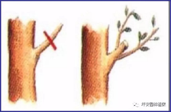 極重短截:僅留基部的2-3個芽,只抽生1-3個弱枝,可降低枝位,削弱旺枝、徒長枝、直立枝的生長,以緩和枝勢,促進花芽形成。