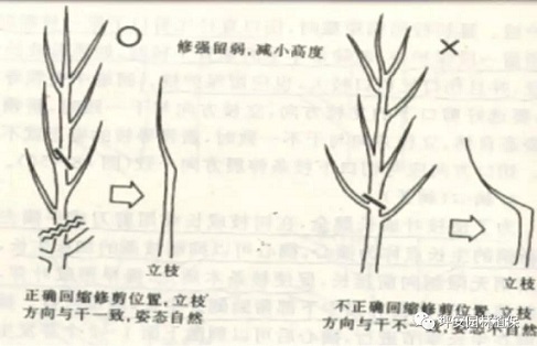 重短截:2/3-3/4。由于留芽少,刺激作用大,會萌發(fā)強壯的營養(yǎng)枝,用于弱樹、老樹和老弱枝的復(fù)壯更新。