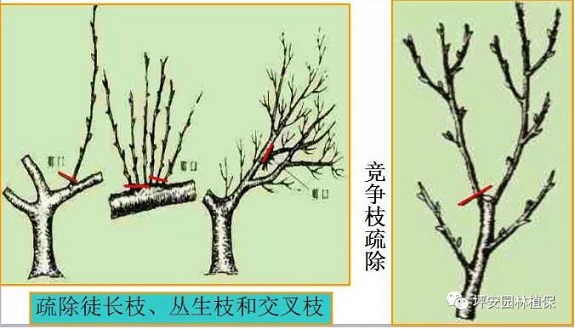 2、疏(疏剪或疏枝):將枝條從分生點基部剪去抹芽、摘葉、去萌、疏花疏果也屬于疏。