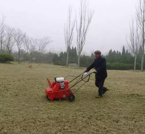 1.打孔。草坪經(jīng)過(guò)一段時(shí)期的生長(zhǎng),草坪根系較密,盤(pán)根錯(cuò)節(jié),低洼處易出現(xiàn)爛根現(xiàn)象,需要用打孔機(jī)進(jìn)行透氣。此季節(jié)不需打孔過(guò)深,一般深度為4厘米左右,打孔后立即剪草。