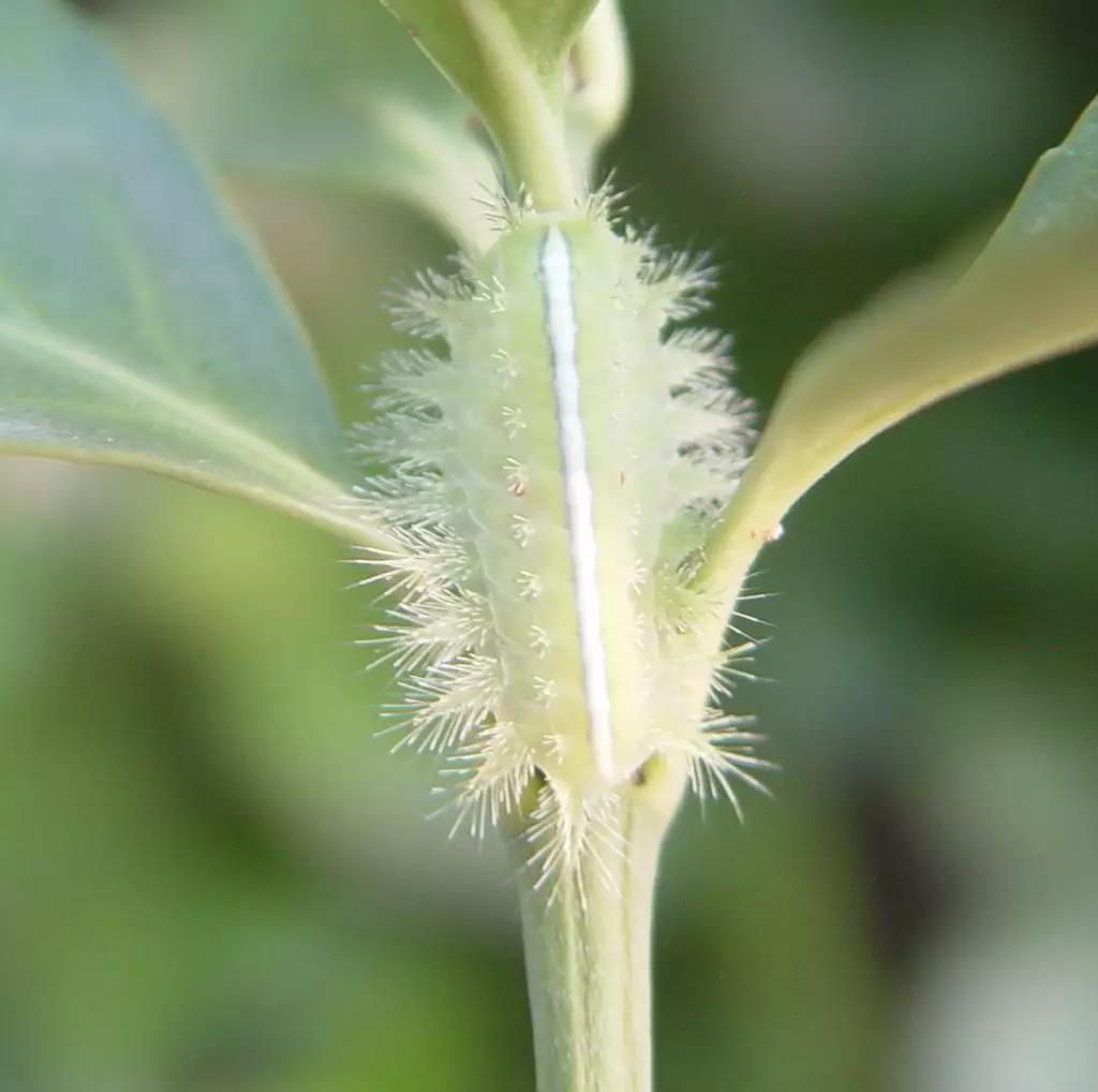 3、幼蟲群集為害時,摘除蟲葉,人工捕殺幼蟲,捕殺時注意幼蟲毒毛。