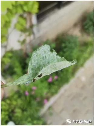近日,作者在周口市園林局發(fā)現(xiàn)枸杞葉片上全是白色的粉末和孔洞。