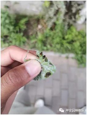 起初被這些白色粉末誤導(dǎo)判斷是白粉病,但細(xì)查之,發(fā)現(xiàn)植物葉片上有許多孔洞,那么這些孔洞是怎么回事?更讓人不解的是找遍葉片上下卻未發(fā)現(xiàn)蟲子的身影,只有一團(tuán)團(tuán)類似蟲子的糞便,發(fā)現(xiàn)了很多類似糞便的分泌物??墒窍x子去哪了?難不成飛走了?