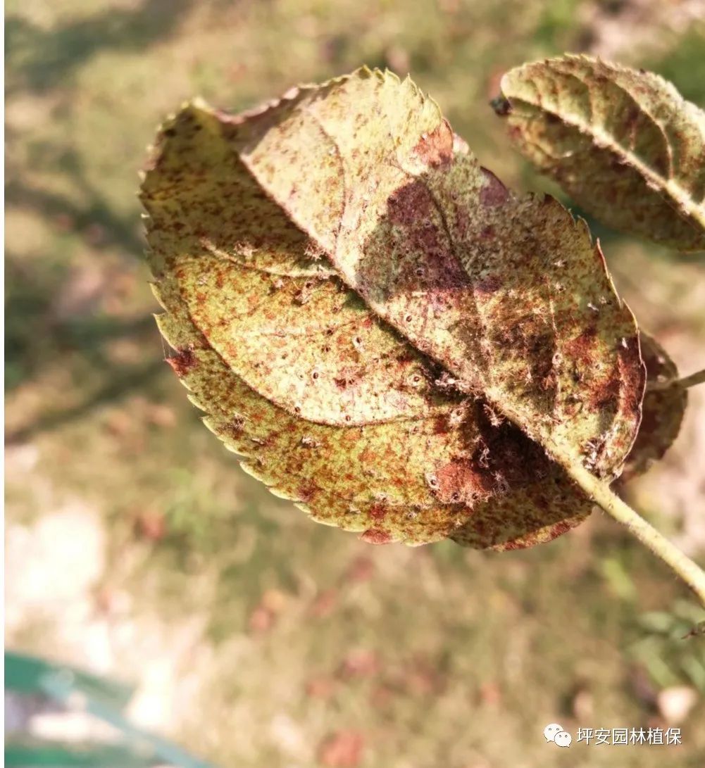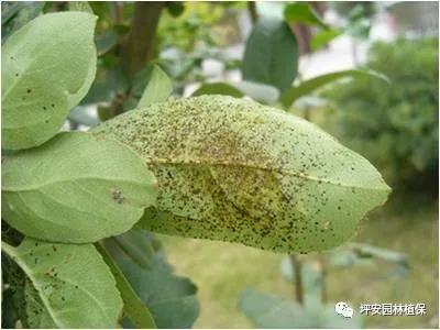以成蟲和若蟲危害葉片,吸食汁液,排泄糞便,使葉片背面呈銹黃色,葉片正面出現(xiàn)白色斑點,嚴(yán)重影響植物的光合作用,致使植物生長緩慢,提早落葉。
