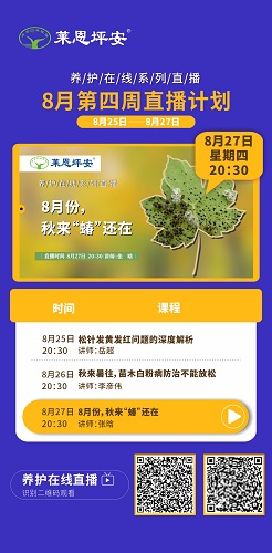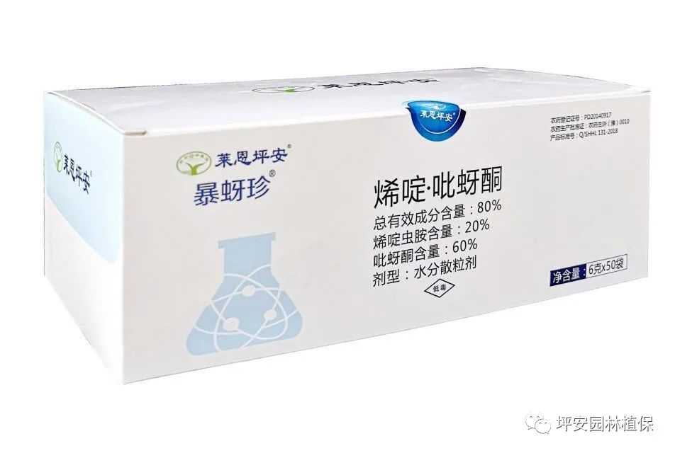 a. 針對小喬木上發(fā)生的網(wǎng)蝽類(梨網(wǎng)蝽、杜鵑冠網(wǎng)蝽等)可用:萊恩坪安瑞刺500-600倍液均勻噴霧或暴蚜珍3000-4000倍液、萊恩坪安瑞卡3500-5000倍液,使用以上藥劑均勻噴霧