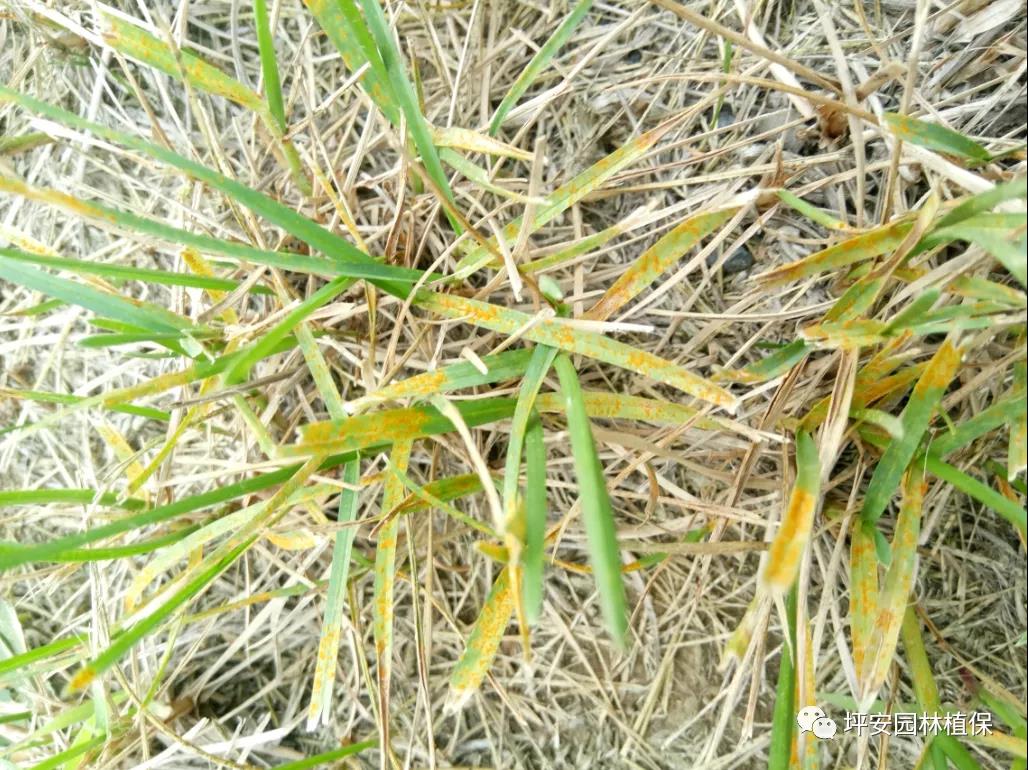 草坪銹病又叫草坪黃粉病,是一種經(jīng)常發(fā)生的草坪葉部病害主要為害草地早熟禾、多年生黑麥草、狗牙根、高羊茅等,尤以草地早熟禾、黑麥草受害嚴(yán)重。在適宜的環(huán)境條件下,幾天內(nèi)就會(huì)大面積發(fā)生,嚴(yán)重影響草坪景觀。