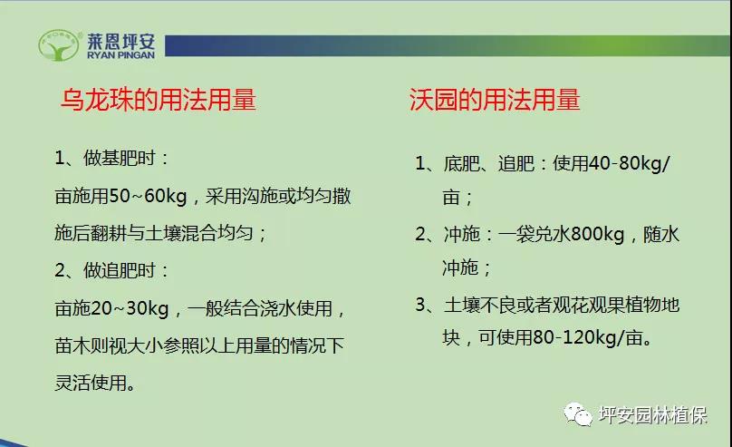 秋季施肥通常以遲效性有機肥料為主,如腐殖質(zhì)酸類、堆肥、廄肥、圈肥、糞肥、復合肥及綠肥、作物秸稈、雜草、枝葉等,并輔以速效化肥與中微量肥料,配合生物菌肥,做到遲效肥和速效肥的相互搭配互補。如復合微生物菌肥----“沃園”及有機無機復混肥----“烏龍珠”。