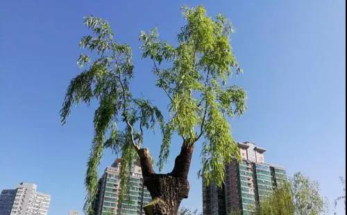 “換”即高接換頭,雌株變雄株。柳樹通過高位去冠,采用雄株金絲垂柳進行嫁接,不僅將原雌株變成雄株,減少了飛絮,還將普通柳樹換成了枝條金黃色的金絲垂柳,美化了環(huán)境。