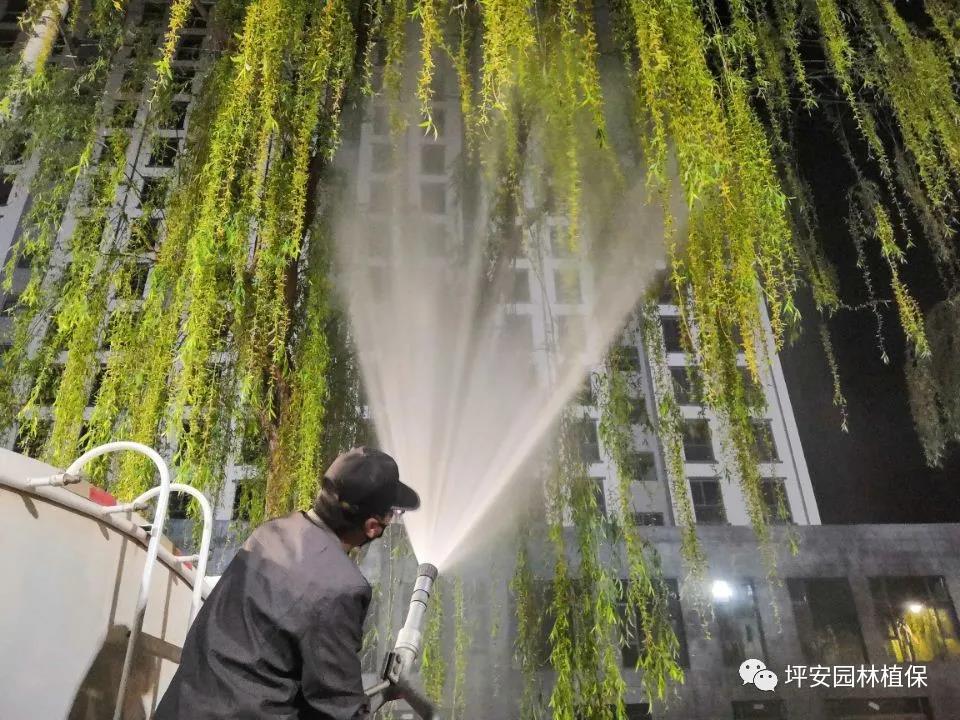 “噴”即對飛絮嚴重的楊柳樹可用高壓噴槍噴水的方法,每3至5天噴水一次,減少飛絮總量。