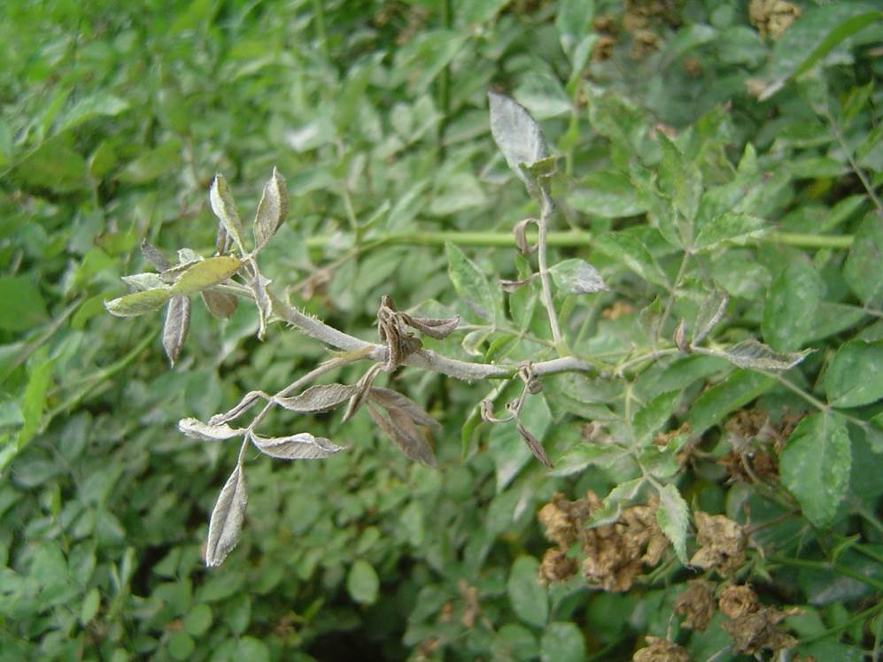 2.幼嫩枝梢染病后也覆有白色粉斑,使新稍發(fā)育畸形,病芽不能展開或產(chǎn)生畸形花,新稍生長停滯,使植株失去觀賞價(jià)值。