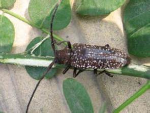 天牛1年發(fā)生1 代,以幼蟲在樹干基部或主根內(nèi)越冬。次年春天化蛹,5~6 月成蟲羽化。5月下旬至6月上旬,產(chǎn)卵在樹干離地面5厘米范圍內(nèi),7月中、下旬為孵化高峰。幼蟲在樹干皮下向下蛀食,一般在地面下 17 厘米以內(nèi),幼蟲在皮下蛀食經(jīng) 3-4 個月后深入木質(zhì)部,轉(zhuǎn)而向出口為羽化孔。從5月下旬開始至7月下旬均有成蟲活動。