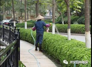及時清除草坪及各種樹木下的雜草,綠籬及色塊內(nèi)生出的雜生植物、爬藤等應(yīng)及時予以連根清除,防止草荒。