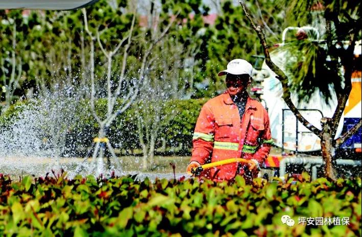 樹木、灌木、花卉、草坪、綠籬及各種色塊進(jìn)入生長旺盛期,各種植物的需水量很大,應(yīng)適時澆水滿足苗木的生長要求,并及時松土保墑。特別是新移栽的苗木,必要時需掛吊袋液補充水分和養(yǎng)分。草皮、地被類苗子用噴灌比較好,澆水的時候要均勻,這就要求苗圃地平坦。澆水時間最好是在清晨或者是傍晚,避開高溫時段。