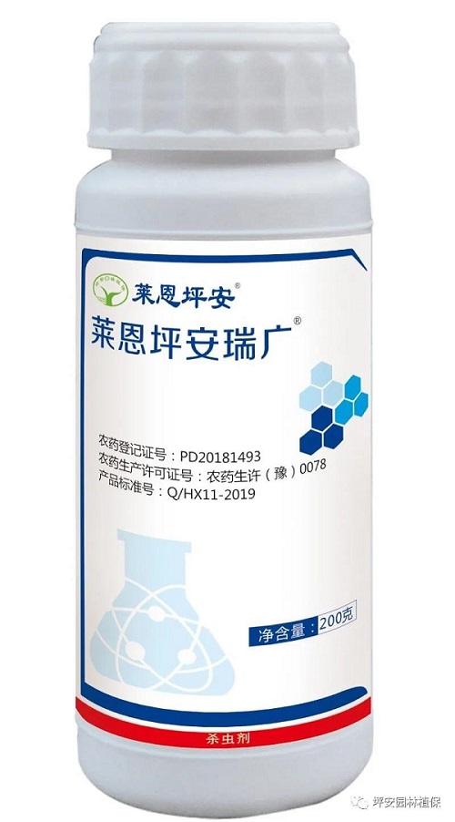 在天牛成蟲羽化初期至盛期,對樹干噴灑微囊懸浮劑:“萊恩坪安瑞卡”稀釋3000-4000倍液,在蟲口基數(shù)較大時可復(fù)配“萊恩坪安瑞廣”,連噴2-3次,中間間隔15-20天。