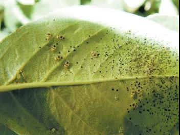 危害時(shí)整株葉片失綠變色,葉背布滿煙油狀分泌物。該蟲成、若蟲集中在葉背面刺吸危害,造成葉片出現(xiàn)黃白色、蒼白色斑點(diǎn),并分泌褐色粘液,嚴(yán)重時(shí)造成早期落葉,影響樹木生長(zhǎng)和花芽形成。