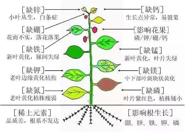 需要注意的是,由于花木對缺少同一種元素的敏感程度不同,加之種種缺素癥狀又常表現(xiàn)有相似之處,故還要用其他方式進一步確認。確認方法有二:一是從葉色上初步判斷可能缺少哪一種元素后,取該元素肥料配成一定濃度的溶液,用毛筆涂在病癥輕的葉片背面,或噴在病株上,一般7~10天后觀察病情康復(fù)情況。若病情有所康復(fù)或新葉生長速度明顯加快,葉色正常,則可確認花木缺乏所噴或所涂的那種元素。二是取一支指形小玻璃管,內(nèi)盛待試溶液,綁在病株上,然后將一病葉主脈兩側(cè)的葉片剪去,將主脈浸在玻璃管溶液中。7~10天若被測病株恢復(fù)正常,則可以確認花木缺少所試元素。