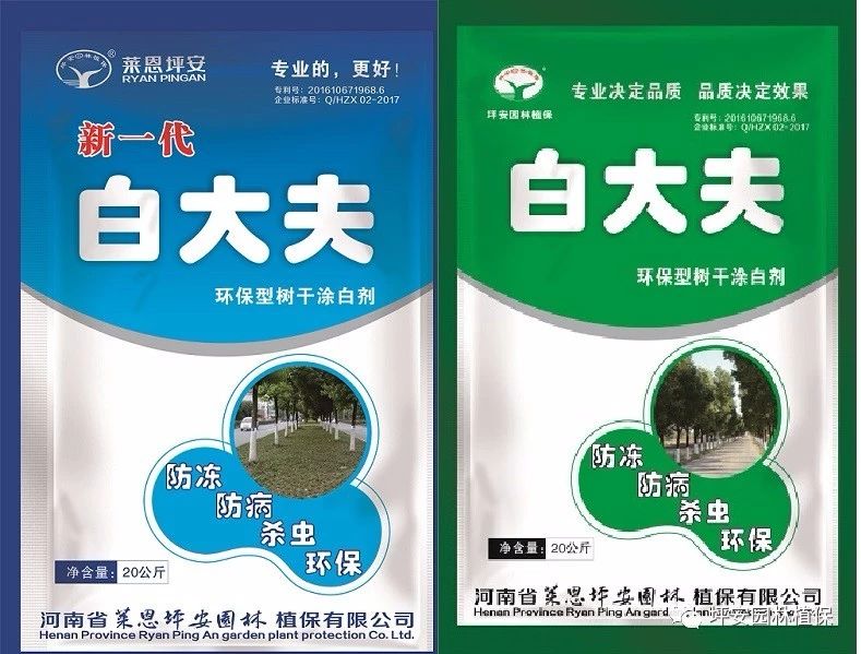 1.白大夫采用多元復(fù)方配制而成,彌補(bǔ)了普通涂白劑的不足,可保護(hù)樹干皮層、減少日灼、凍害,可大幅度減輕“倒春寒”造成的危害,并具有防病、殺蟲、殺卵等特點(diǎn)。另外通過樹皮的的吸收作用,還可以增強(qiáng)整個樹體的抗病蟲能力。