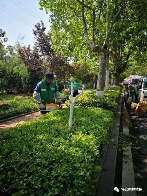 根據(jù)自然降雨、綠地土壤水分狀態(tài),合理安排灌水。草坪至少每周澆一次透水,以延長(zhǎng)綠期?;ü嗄炯吧珘K及時(shí)合理安排灌水以解決蒸發(fā)量增大引起的干旱。