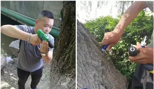 “射”即注射柳絮生長調(diào)節(jié)劑。飛絮是楊樹、柳樹雌株開花結(jié)果的產(chǎn)物,絮狀物里就是它們的種子。隨著果實的不斷成熟這種白色絮狀物種子飛出,隨風(fēng)傳播。雌株開花前在樹身上注射生長調(diào)節(jié)劑,抑制花芽形成,開不出花來,自然就不會形成飛絮,達(dá)到控制飛絮污染的目的。目前市場上最具效果的應(yīng)屬“絮靜”。