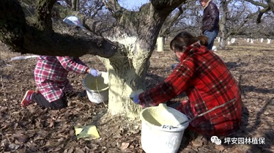 秋冬和早春時(shí)進(jìn)行清園的時(shí)候,為了避免果樹發(fā)生低溫凍害、日灼等問題,同時(shí)也為了滅殺病蟲害,我們可以把石硫合劑與生石灰、食鹽、植物油、清水按照0.5:5:0.5:1:20的比例配制成石硫合劑涂白劑,然后涂抹在果樹的枝干上,這層涂白劑就能起到預(yù)防凍害、日灼和病蟲害的作用。