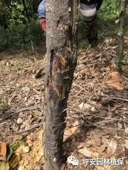 倒伏的樹木由于根系受損嚴(yán)重,前期生長勢偏弱,發(fā)生病蟲害的機率偏高。一旦發(fā)現(xiàn)病蟲侵害,建議使用相對應(yīng)的殺蟲殺菌劑進(jìn)行噴霧防治。