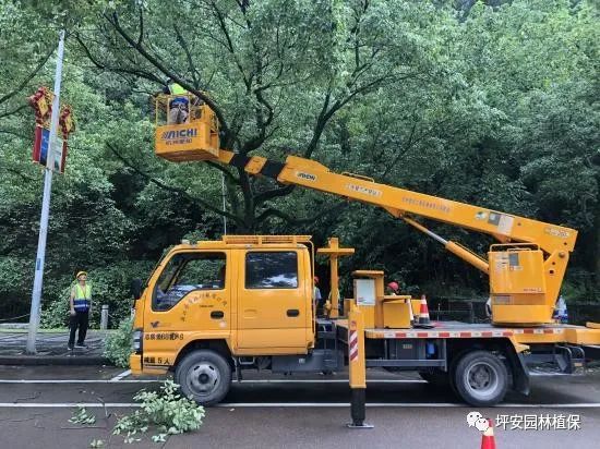 受病蟲害危害嚴(yán)重的枯弱枝,一定要進(jìn)行修剪、清理,避免折斷砸到行人、車輛、建筑物等;“頭重腳輕”明顯的樹木(如種植地勢高、冠幅大但樹穴小等樹木),除打支撐外,還要進(jìn)行疏枝疏葉,降低樹冠密度,減少臺風(fēng)刮倒的機率。