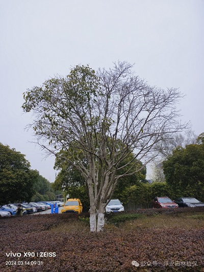 4月12日,救治1個月后,桂花樹已重新煥發(fā)蓬勃生機(jī),大量葉片萌發(fā)生長,油綠健康。