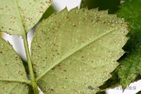 危害特征:主要以若螨、成蟲在葉背刺吸汁液,被害葉片葉綠素受到破壞,出現(xiàn)鐵銹色,葉片呈“干糊狀”,手觸摸易脆。初期葉片失綠,葉緣向上卷翻,以致焦枯、脫落,造成花蕾早期萎縮,嚴重時植株死亡。除直接使植物出現(xiàn)褪綠、黃點、褐斑、落葉等癥狀外,還可傳播各種病原體,引起其他病毒病。