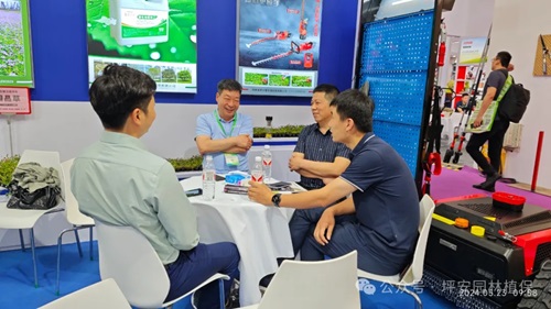展會現(xiàn)場,用戶對坪安旗下展示的產(chǎn)品產(chǎn)生了的極大興趣和關(guān)注,工作人員與參觀者圍坐在一起,就坪安產(chǎn)品與園林養(yǎng)護等相關(guān)問題進行詳細交流。