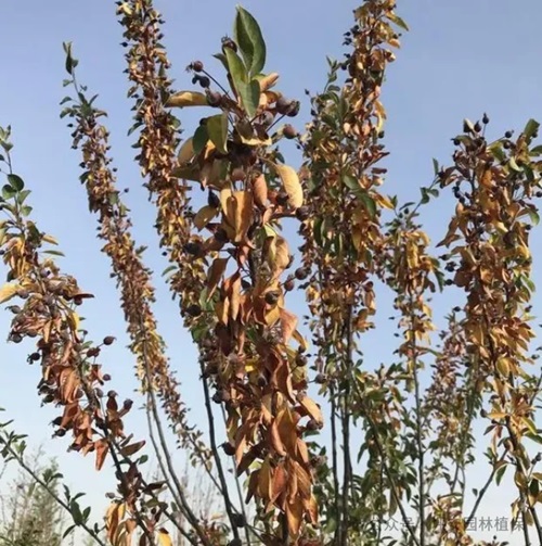 日灼常常引起葉片焦枯、樹干開裂,灼環(huán)皮燒等現(xiàn)象,導致營養(yǎng)水分傳導受阻,并引起病蟲害侵染,造成樹木出現(xiàn)枯死、褐變、幼嫩枝葉或植株枯死等現(xiàn)象。需對樹木進行遮陰處理。