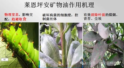 (2)無抗藥性:礦物油殺蟲時主要是通過封閉害蟲的呼吸系統(tǒng),造成害蟲無法呼吸,使害蟲窒息死亡,害蟲無法對其產(chǎn)生任何抗性,也會在植物體表面形成油膜阻止害蟲的幼、若蟲在其上著落,并且還能直接殺死蟲卵,延長持效期;殺菌時則主要通過破壞病菌的細胞壁,干擾其呼吸,并可干擾病原體對寄主植物的附著或直接通過油膜封閉直接滅殺。因此病蟲害都不會對礦物油產(chǎn)生抗藥性。