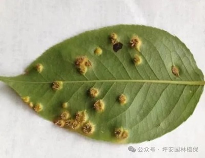 櫻花銹病主要危害櫻花的葉片和枝干,嚴(yán)重時也會影響到植株的整體健康。感染銹病的櫻花葉片出現(xiàn)橘黃色粉狀孢斑,葉片背面會出現(xiàn)毛狀物,枝干上可能形成腫瘤。在3月份開始發(fā)生,7-9月為發(fā)病高峰期,尤其是在高溫高濕、降雨頻繁的氣候條件下,病害易于流行。